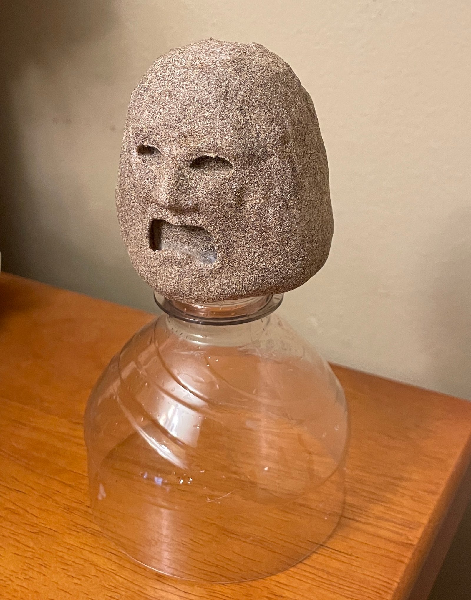 This cap screws onto plastic beverage bottles, guarding their contents with the might of ZARDOZ. The giant floating stone head is the title character, if you can call it that, of a campy old SF film starring Sean Connery as the scantily clad hero. (3D-printed food-safe PETG, spray paint, rubber washer)