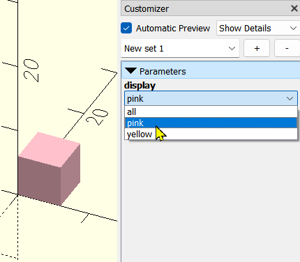 if (display=="*" || display=="y") color("yellow") translate([2,2,2]) cube(6);