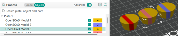 - OpenSCAD has no UI to directly display the list of objects in your generated model. If you keep the above principles in mind you can write code with reasonable assurance that you’re exporting things as separate objects. But the real acid test is importing it into the slicer.1
