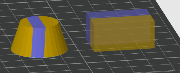 Which color takes precedence if there’s an overlap, depends on the order they’re listed in the Objects panel. In many cases, you won’t care, but if one filament is more expensive than another, or if one is translucent enough to see other colors through it, you might want to adjust the order to control this.