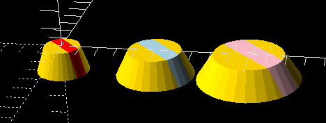 The module produces a multicolored shape like a peanut-butter cup with a pretty striped wrapper, but because there’s just one top-level statement — pbCup() — the resulting model contains just one object.